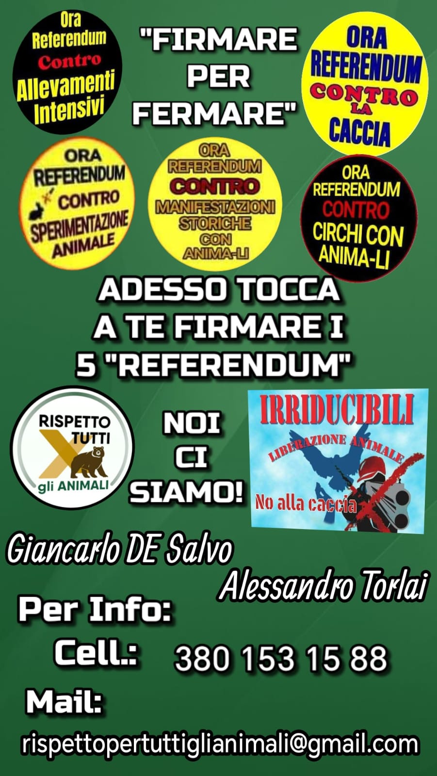 Presso gli uffici comunali sono disponibili moduli necessari alla raccolta firme delle seguenti iniziative: