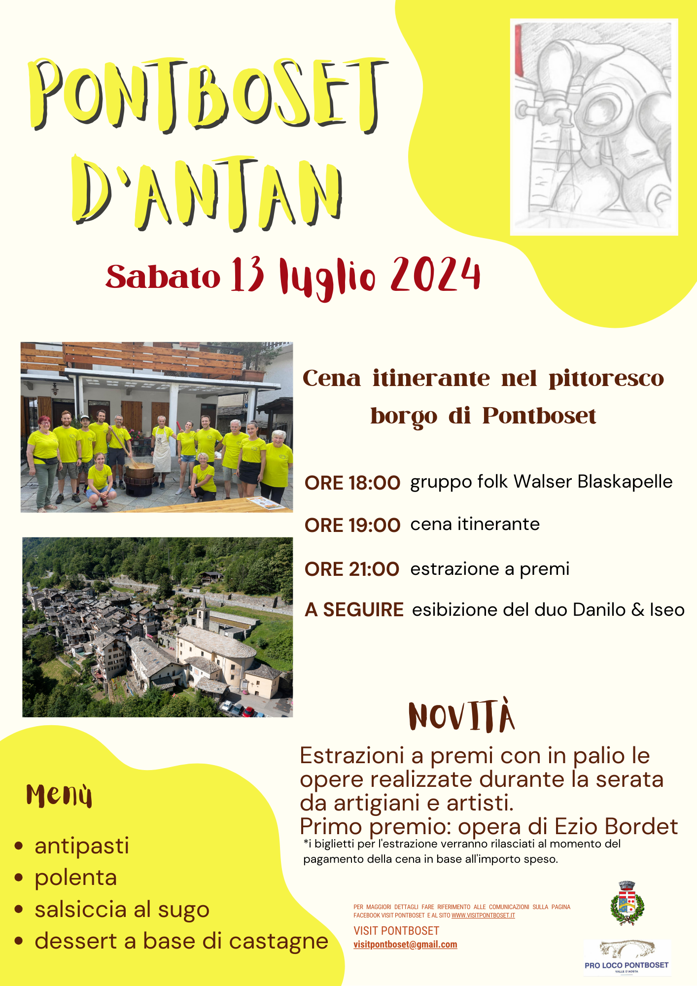 Per maggiori dettaglio fare riferimento alle comunicazioni sulla pagina facebook VISIT PONTBOSET e al sito www.visitpontboset.it